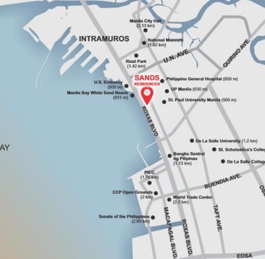 Sands Residences offers modern condominium living along Roxas Boulevard with views of Manila Bay and convenient access to cultural landmarks, shopping centers, and major transport routes. The development features thoughtfully designed units and lifestyle amenities suited for city living. It is ideal for professionals, families, and investors seeking a residence near Manila’s key districts.